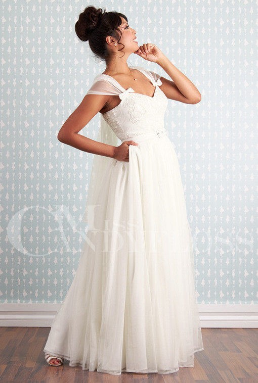 Step into your fairytale moment with this elegant wedding dress, designed to captivate with its romantic charm.